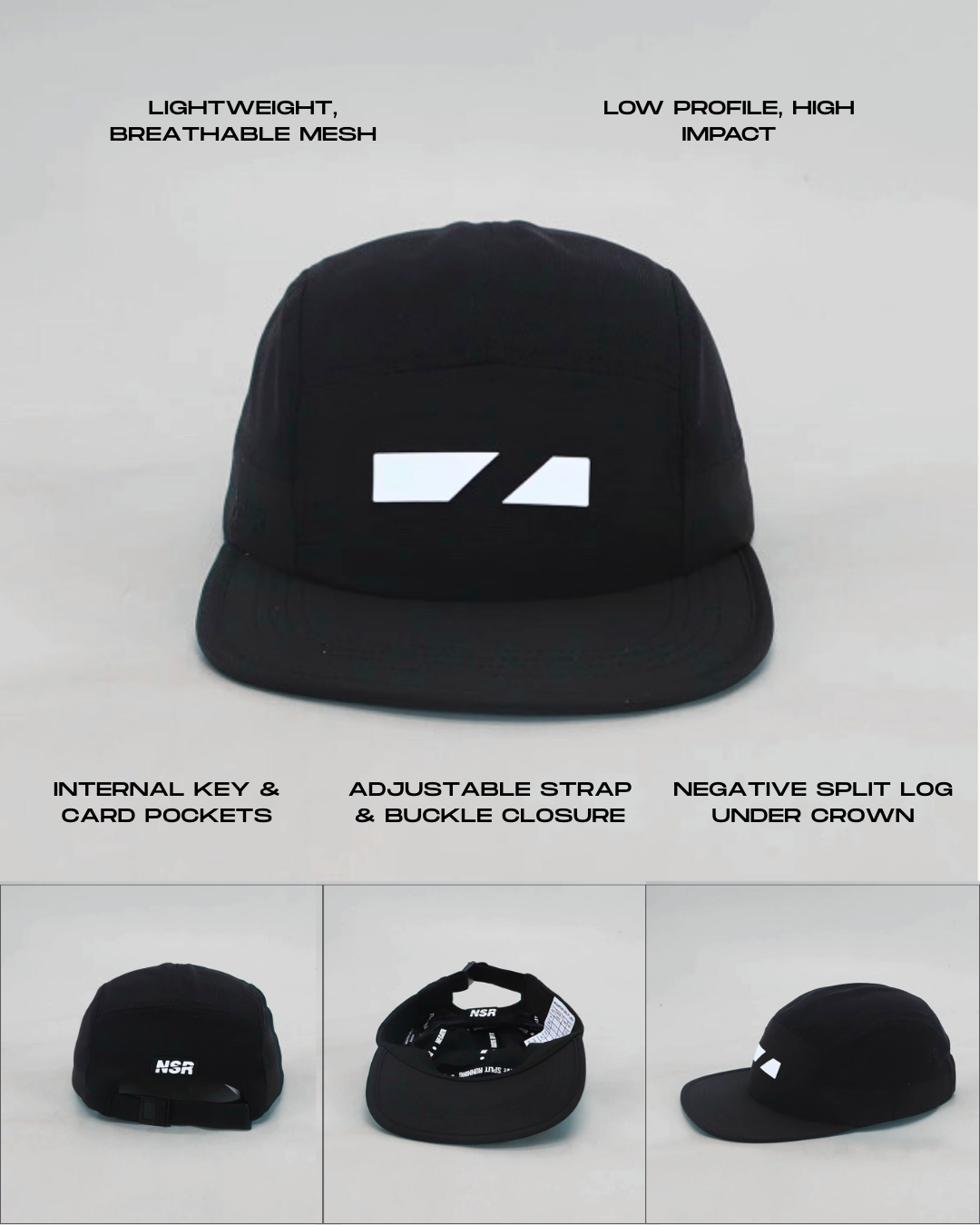 Our classic 5-panel running hat. Built for daily miles and steady work. Lightweight, breathable, and ready to disappear when the pace picks up.